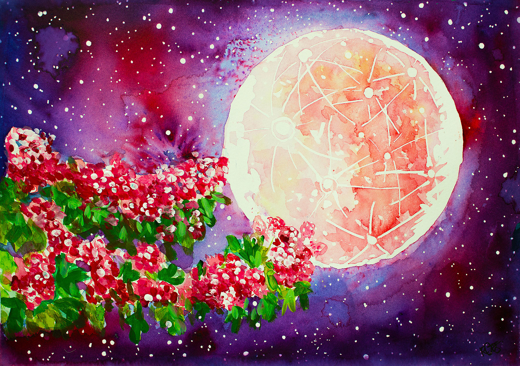 Flower Moon – 14.8 x 10.5 landscape rectangular greetings card with envelope, no plastic.